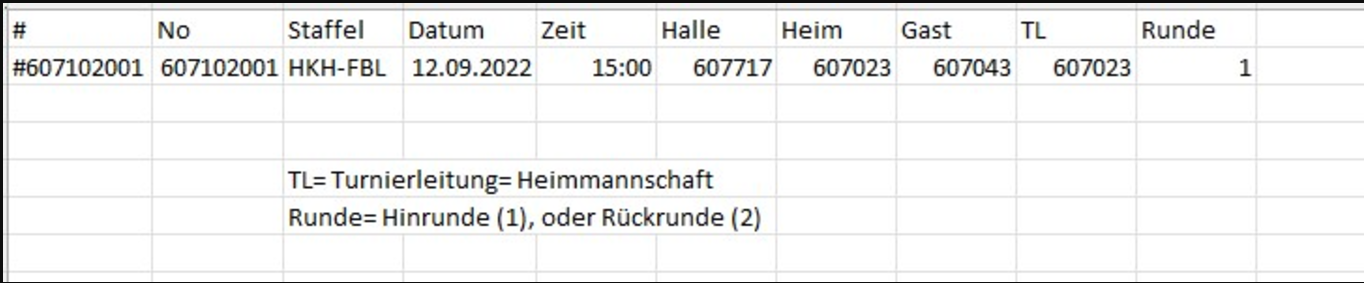 | Heim | Vereinsnummer des Heimvereins (ersichtlich im Blatt “Mannschaften”) |