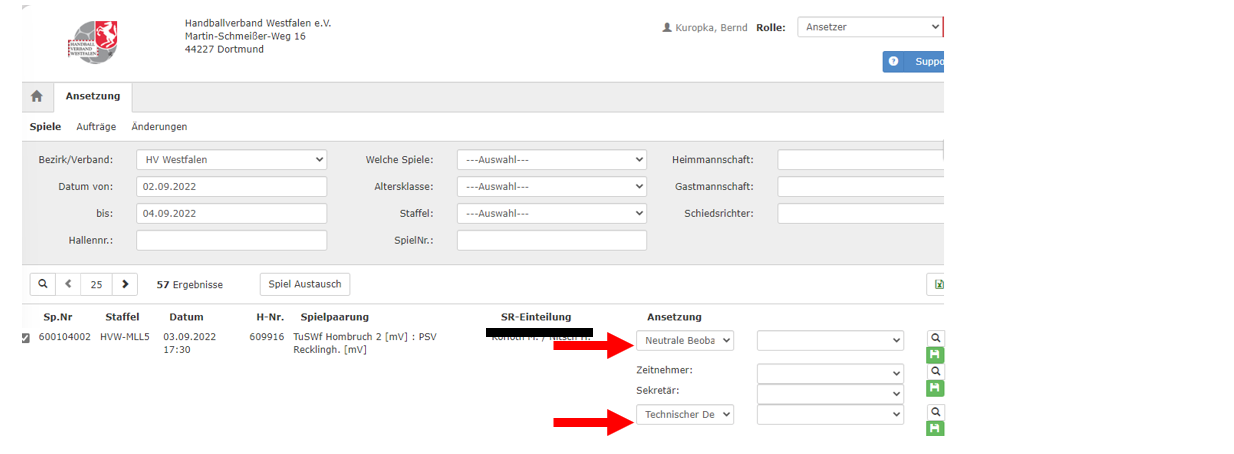 - Ansetzungen zur Schiedsrichterbeobachtung