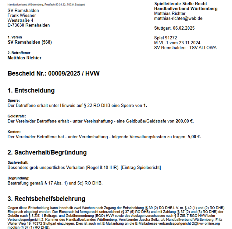 durch den Verein definierten Vereinsverantwortlichen. Folgender Screenshot zeigt so eine Beispielmail.
