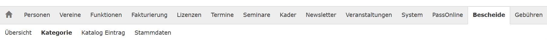Die Basis zur Erstellung von Gebührenbescheiden bildet die Konfiguration der Anwendung. Diese wird von den verantwortlichen Personen auf Verband und Kreis Ebene vorgenommen. Das System bietet dazu die Möglichkeit, Kategorien, Katalog Einträge und Stammdaten zu hinterlegen. Auf Grundlage dieser Konfiguration können die Bescheide in standardisierter und teilautomatisierter Weise verschickt werden. Dieser Teil im Prozess wird in der Regel durch den Geschäftsstellen Administrator durchgeführt. Dies findet bei der Einführung des Gebühren-Moduls statt.