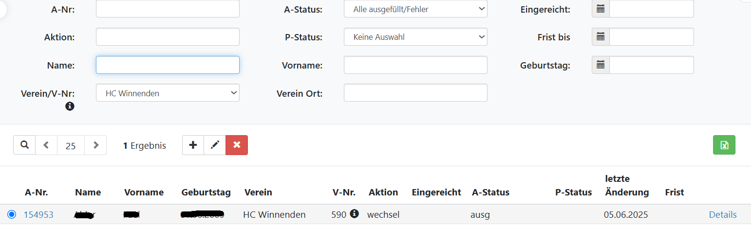 Der Antrag auf Vereinswechsel ist nur möglich, wenn der Spieler beim alten Verein auch abgemeldet wurde. Ist der alte Verein auch Nutzer von Phoenix II Handball, so wird vom System automatisch erkannt, dass der Spieler abgemeldet wurde.