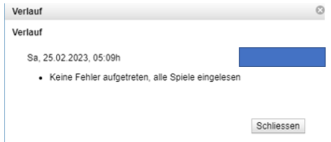 Dies geschieht indem man die csv-Datei erneut aufruft und die fehlerhaften Daten korrigiert. Danach wird durch ein erneutes einlesen des Spielplans der Transfer sichergestellt.