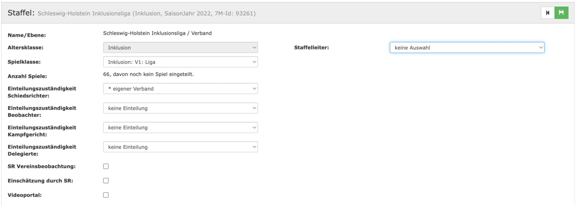 Auf dieser Seite kann man die Daten zu den Einteilungszuständigkeiten, zur Beobachtung und auch den Staffelleiter hinterlegen.