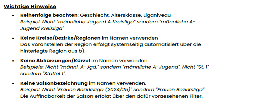KEINE Regionsbezeichnungen im Langnamen, aber das Regionskürzel gerne am Ende im Staffel-Kurznamen anhängen (siehe neuen Anhang).